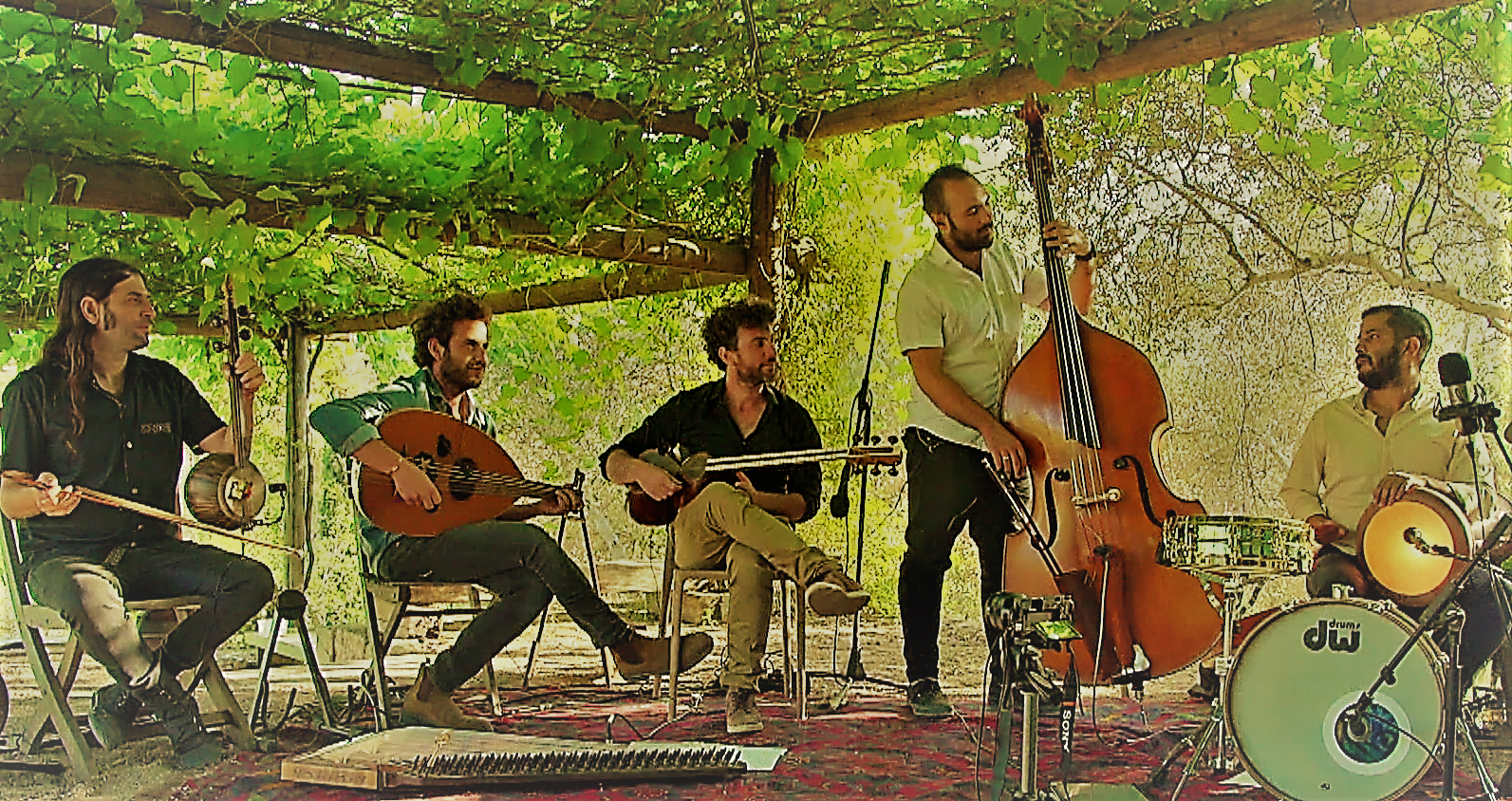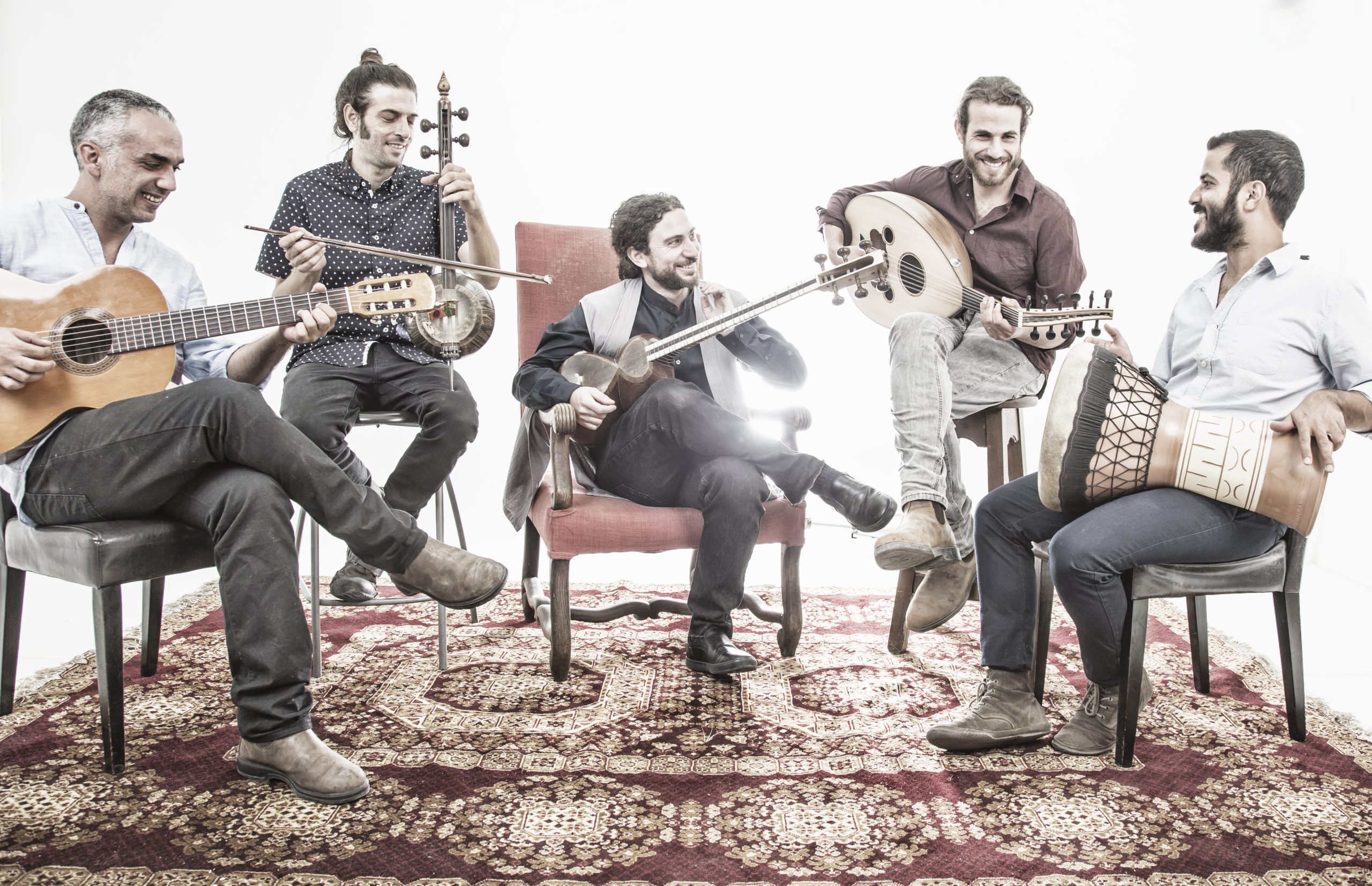 The fusion of the Persian tar and kamancheh – ancient instruments from the Persian tradition, alongside traditional Arabic instruments such as oud, qanun, and ney, as well as the Armenian duduk, meets Western classical guitar and electric bass to create a unified and deeply moving sound.